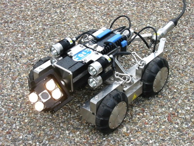 | 特徴 | ●長距離走行に対応した自走車により、標準500m(最大600m)の走行が可能です。 ●自走車は左右独立駆動方式及びセンサー内蔵により走行時のローリング(傾き)補正が出来ます。 ●小口径用自走車により管径200mmから対応可能です。 ●多彩なオプションにより作業用途を拡張することができます。 ●下の写真は管径φ2000mmセットです。 |