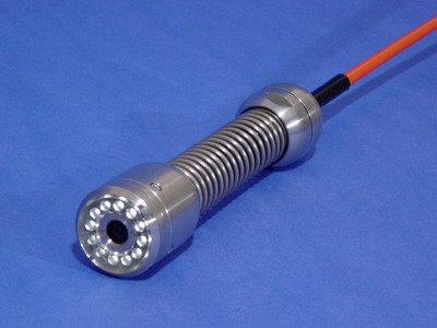 | 特徴 | ●下水道、電纜管及びプラント配管などの小口径・曲管に挿入して管内検査に適しています。 ●高輝度LEDによりφ200mm以上の管内でも鮮明な映像が得られます。 ●2分割されたカメラヘッドは小型でフレキシブルのため、小口径・曲管でもスムーズに通過します。 ●カメラヘッド部は完全防水構造ですので、取扱い・メンテナンスが容易です。 ●オプションのセンサーを内蔵することで管内でのカメラ位置・深さを計測することができます。 |