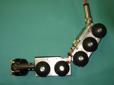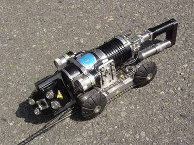 | 特徴 | ●300mm人孔に対応した自走ユニットでfす。 ●自走車が折れ曲がり式になっています。 ●TKC-7800シリーズの自走車と互換性があります。 ●対応管径φ150mm、200mm ●VP管対応(内径φ145mm)タイヤ付属 |